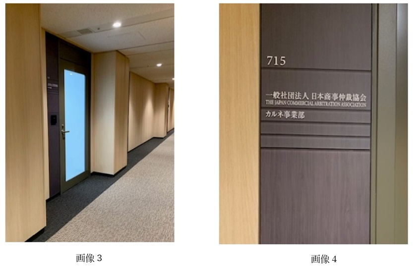 6.自動ドアが開錠されましたら中にお進みいただき、右に曲がった最初のドア(715号室・画像3)に向かってください。カルネ事業部の表示(画像4)をお確かめのうえ、ドアを開けてお入りください。
